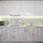 Mani Laurusアパ-トの部屋は冷蔵庫,オ-ブンとガラス製品があります. [linie 44]バス停は歩きで10分で行けます.